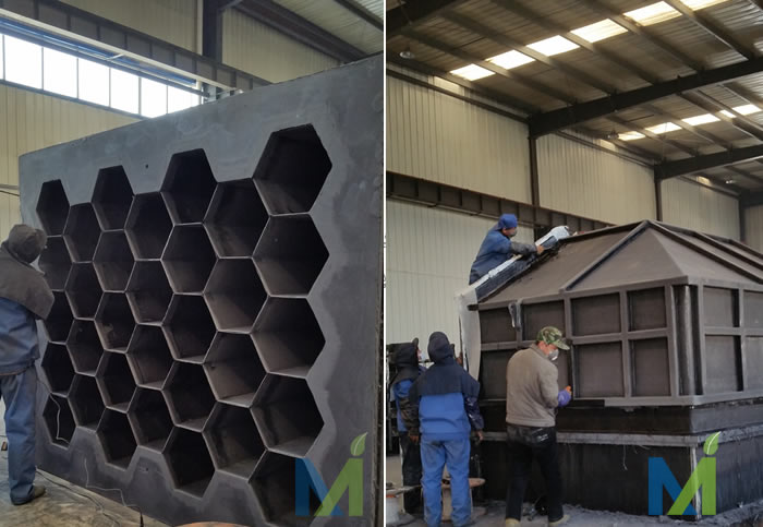 工人正在對(duì)濕式靜電除塵器陽極模塊進(jìn)行打磨